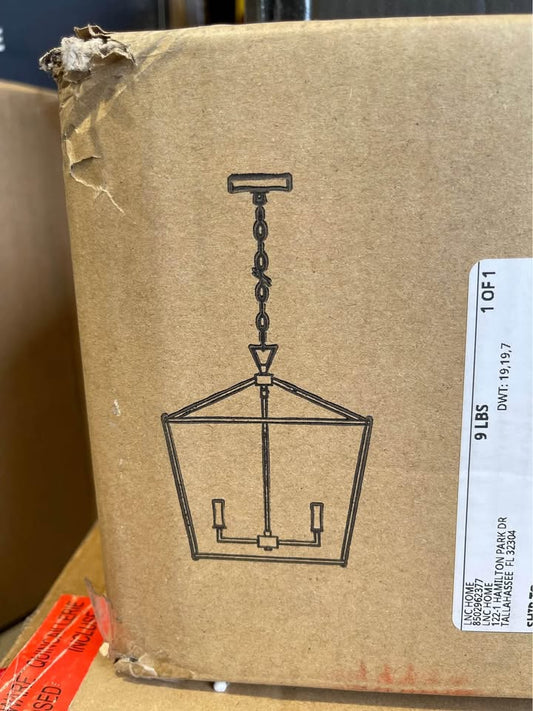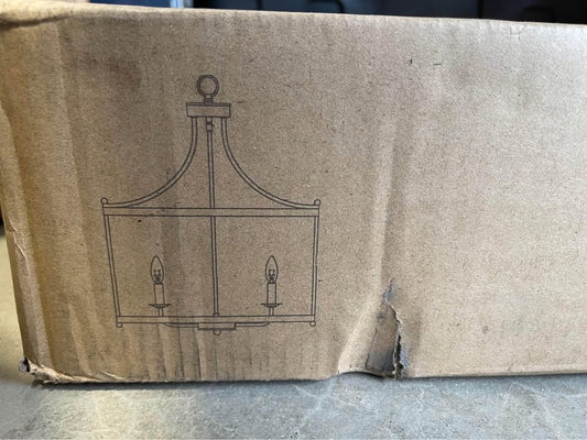 LNC 17.5 in. W Gold Chandelier Modern Candlestick Island 4-Light Lantern Cage Linear Geometric Pendant Chandelier