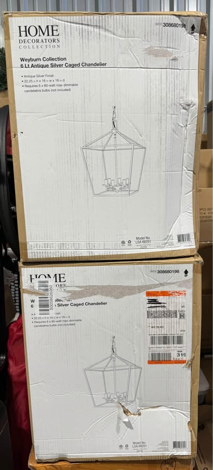 Home Decorators Collection Weyburn 6-Light Antique Silver Leaf Farmhouse Chandelier Light Fixture with Caged Metal Shade