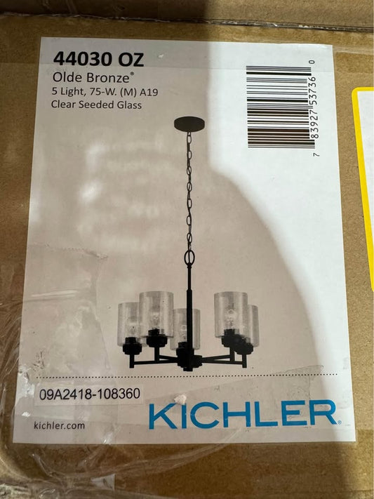 KICHLER Winslow 19.75 in. 5-Light Olde Bronze Contemporary Shaded Cylinder Chandelier for Dining Room