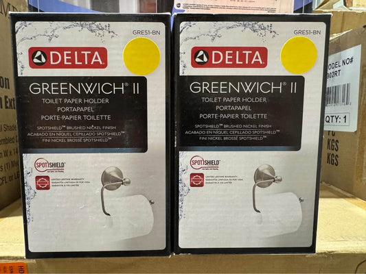 Delta Greenwich II Wall Mount Euro Single Post Toilet Paper Holder Bath Hardware Accessory in Brushed Nickel