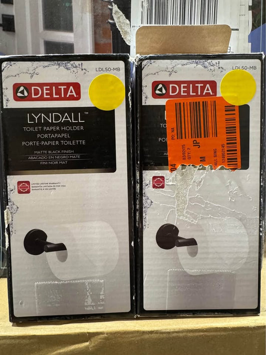 Delta Lyndall Wall Mount Euro Single Post Toilet Paper Holder Bath Hardware Accessory in Matte Black