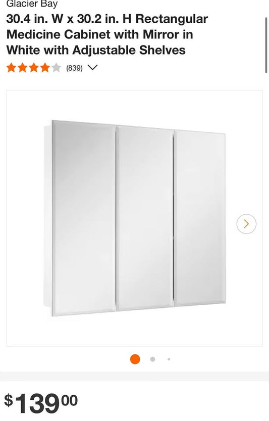 Glacier Bay 30.4 in. W x 30.2 in. H Rectangular Medicine Cabinet with Mirror in White with Adjustable Shelves