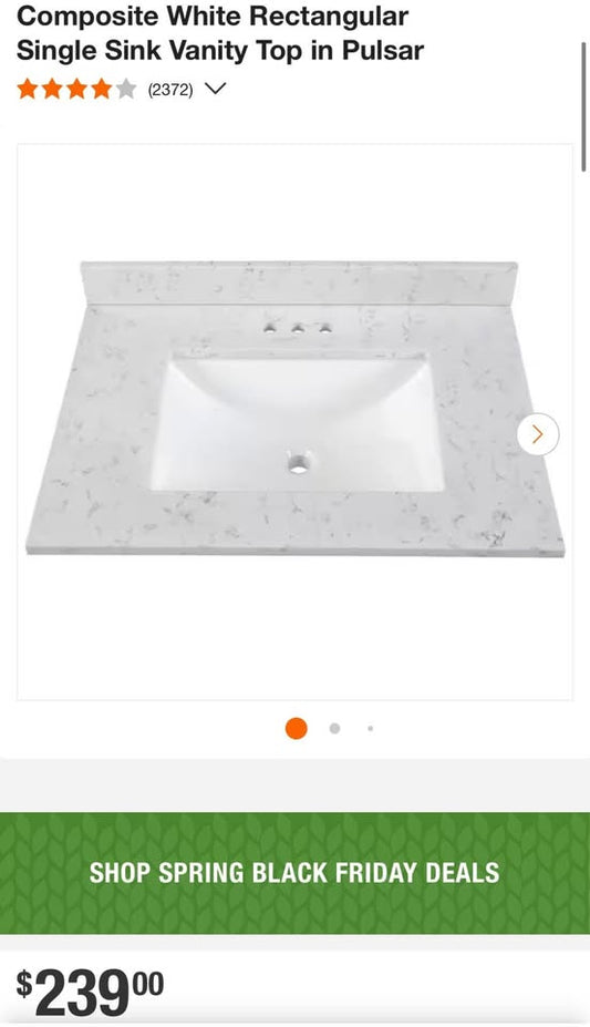 Home Decorators 31 in. W x 22 in. D Engineered Stone Composite White Rectangular Single Sink Vanity Top in Pulsar