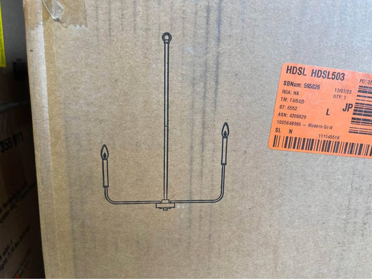 LNC 17.5 in. W Gold Chandelier Modern Candlestick Island 4-Light Lantern Cage Linear Geometric Pendant Chandelier