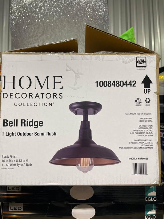 Home Decorators Bell Ridge 10 in. 1-Light Black Semi-Flush Mount