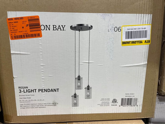 Hampton Bay Regan 3-Light Brushed Nickel Pendant Hanging Light with Clear Glass Shades, Industrial Kitchen Pendant Lighting