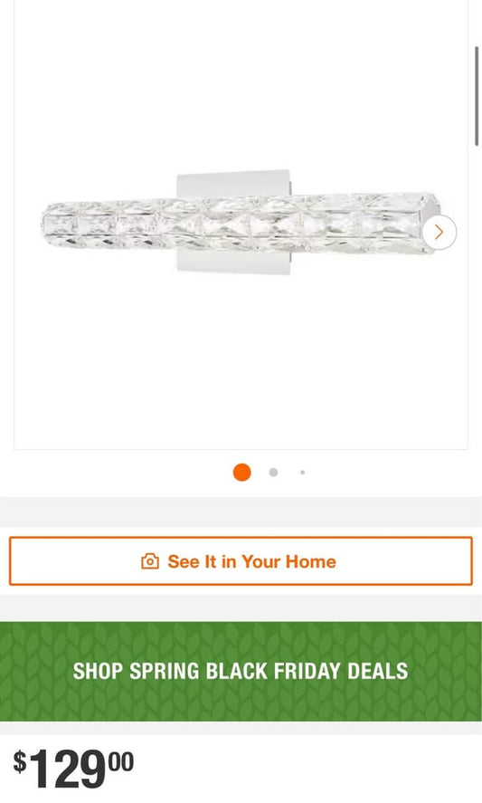 Home Decorators Keighley 24 in. Integrated LED Chrome Bathroom Vanity Light Fixture with Crystal Shade
