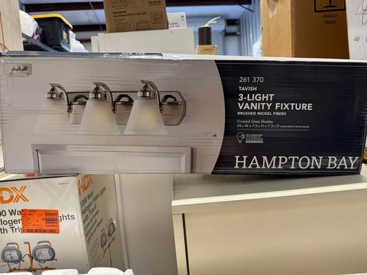 Hampton Bay Tavish 24 in. 3-Light Brushed Nickel Classic Vanity with Frosted Glass Shade