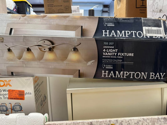 Hampton Bay Andenne 34.3 in. 4-Light Transitional Brushed Nickel Bathroom Vanity Light Fixture with Marbleized Glass Shades