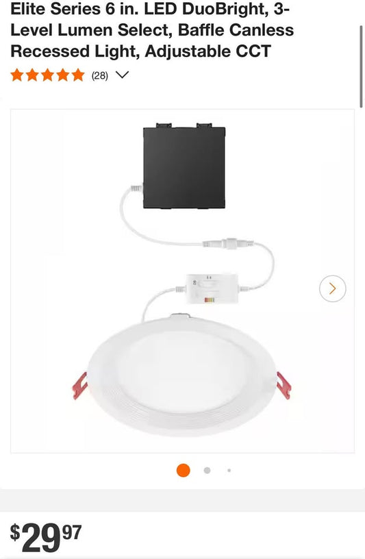 Commercial Electric Elite Series 6 in. LED DuoBright, 3-Level Lumen Select, Baffle Canless Recessed Light, Adjustable CCT