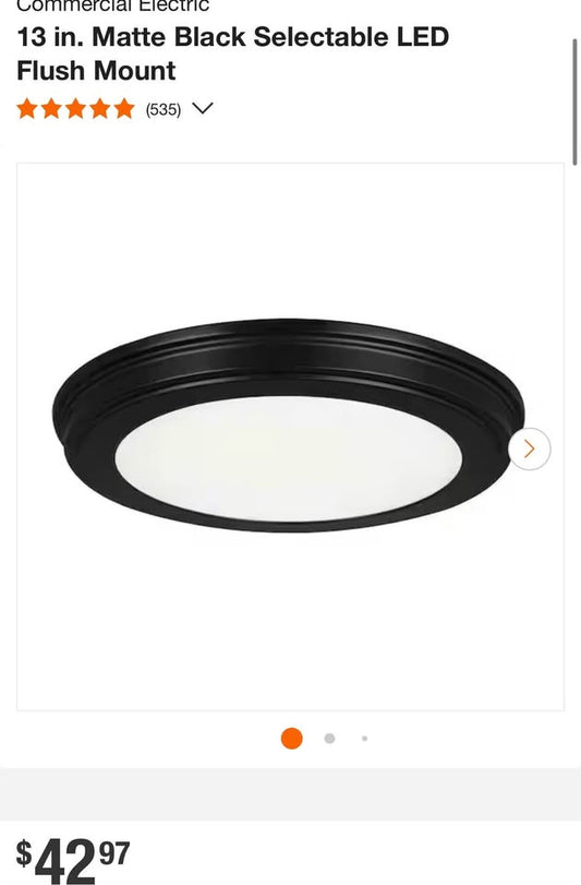 Commercial Electric 13 in. Matte Black Selectable LED Flush Mount