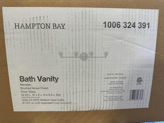 Hampton Bay Marsden 32.5 in. 4-Light Brushed Nickel Transitional Vanity with Clear Glass Shades
