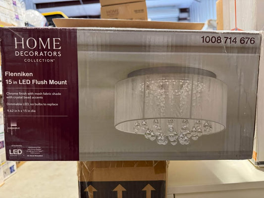 Home Decorators Flenniken 15 in. Integrated LED Chrome and Crystal Flush Mount Ceiling Light Fixture