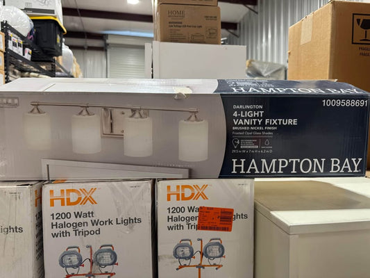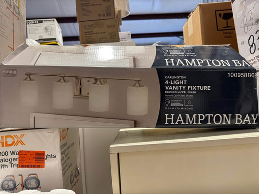 Hampton Bay Darlington 29.5 in. 4-Light Brushed Nickel Vanity Light with Frosted Opal Glass Shades