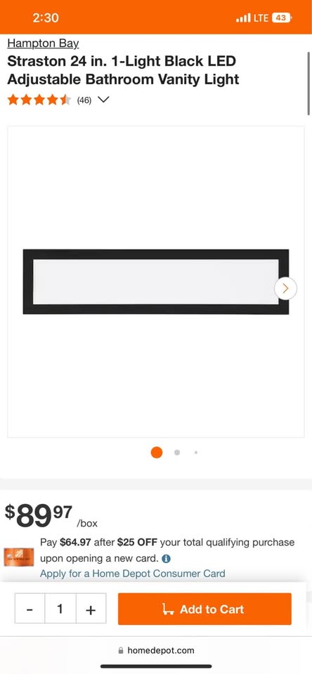 Hampton Bay Straston 24 in. 1-Light Black LED Adjustable Bathroom Vanity Light