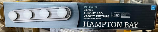 Hampton Bay Midford 24 in. 4-Light Brushed Nickel LED Vanity Light Bar with Frosted Shade