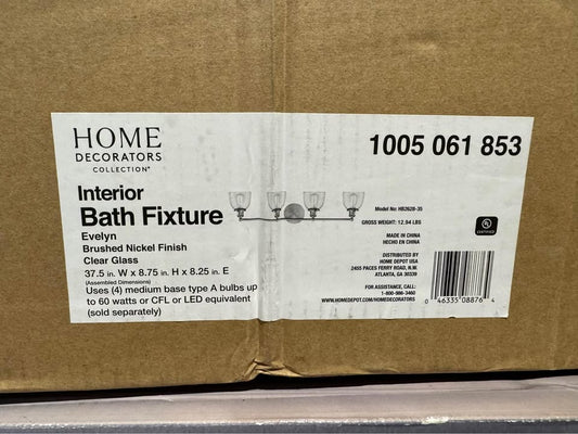 Home Decorators Collection Evelyn 37.5 in. 4-Light Brushed Nickel Industrial Vanity with Clear Glass Shades