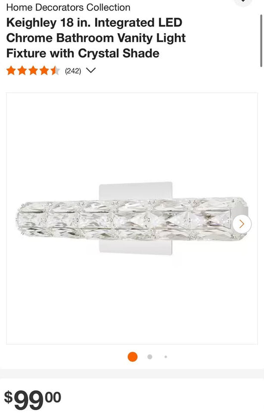 Home Decorators Collection Keighley 18 in. Integrated LED Chrome Bathroom Vanity Light Fixture with Crystal Shade