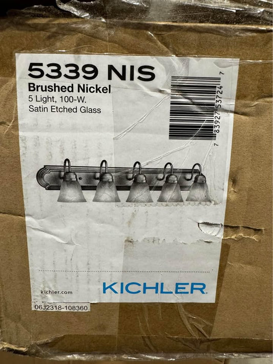 KICHLER Independence 36 in. 5-Light Brushed Nickel Traditional Bathroom Vanity Light with Frosted Glass Shade