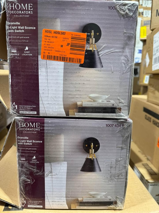 Granville Collection 1-Light Matte Black & Vintage Gold Wall Sconce with Bell Shade Modern Damp-rated Bath Vanity Light