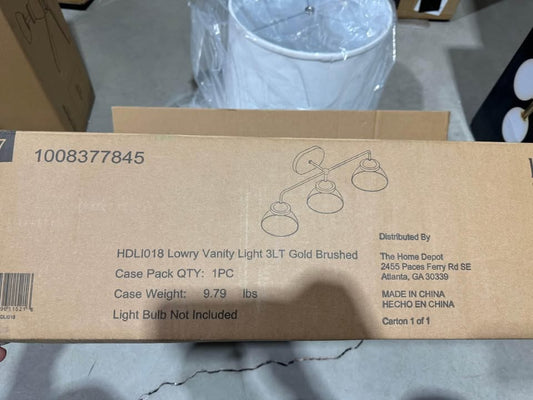 Lowry 30 in. 3-Light Brushed Gold Vanity Light with Glass Shades