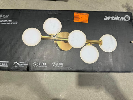 Artika Bloom 27 in. 5-Light Gold Modern Integrated LED Vanity Light Bar for Bathroom with Frosted Glass