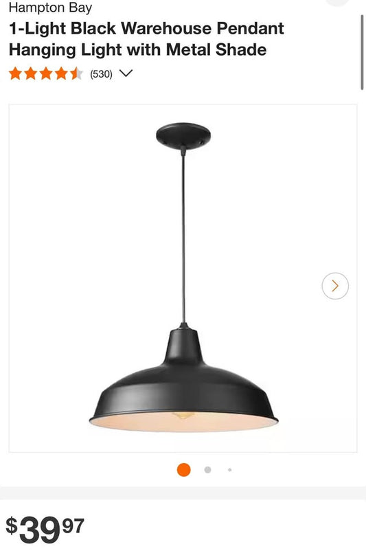 Hampton Bay 1-Light Black Warehouse Pendant Hanging Light with Metal Shade