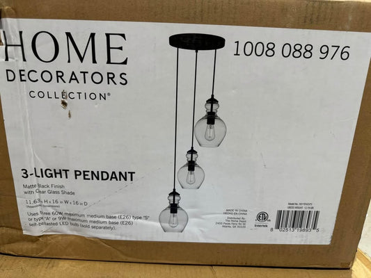 Home Decorators Collection Bakerston 3-Light Matte Black Hanging Pendant with Clear Glass Shades
