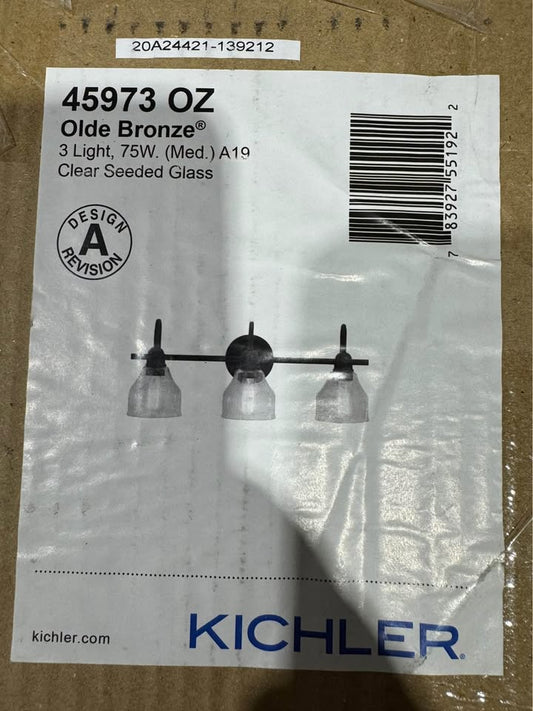 KICHLER Avery 24 in. 3-Light Olde Bronze Vintage Bathroom Vanity Light with Clear Seeded Glass