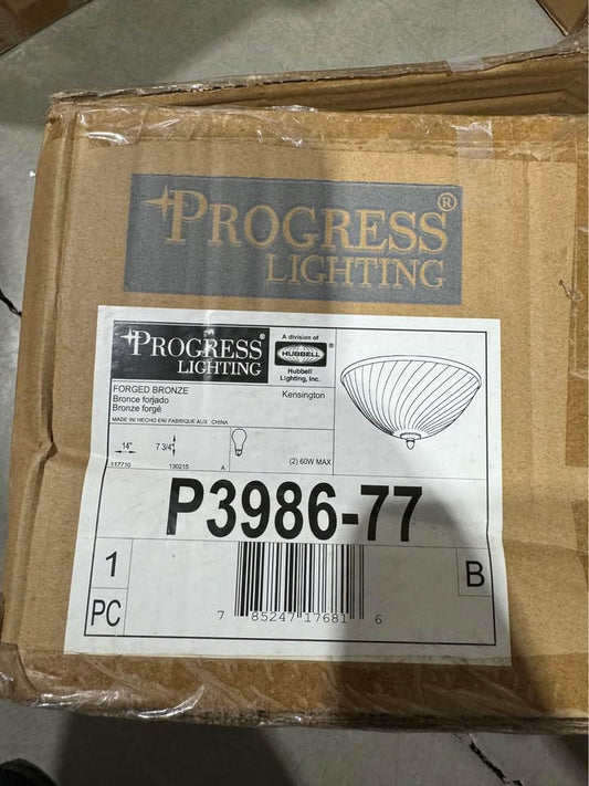 Kensington Collection 2-Light Forged Bronze Flush Mount with Frosted Caramel Swirl Glass