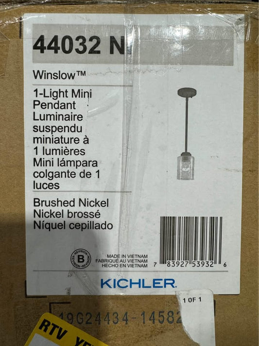KICHLER Winslow 1-Light Brushed Nickel Contemporary Kitchen Mini Pendant Hanging Light with Clear Seeded Glass