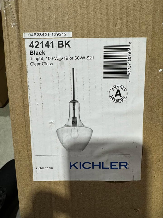 KICHLER Everly 15.25 in. 1-Light Black Transitional Shaded Kitchen Bell Pendant Hanging Light with Clear Glass