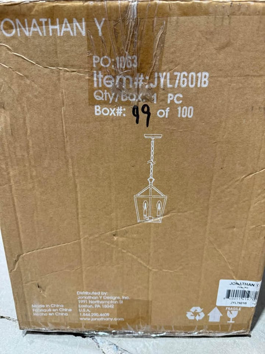 Jonathan Y Ojai 10 in. 3-Light Iron Classic Modern Lantern LED Brass Gold Pendant