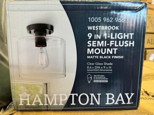 Hampton Bay Westbrook 8 in. 1-Light Matte Black Flush Mount