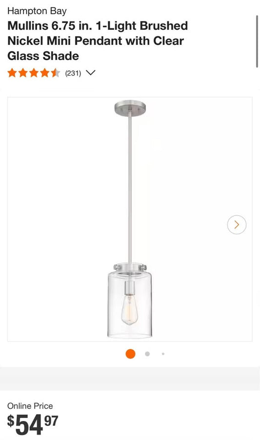 Hampton Bay Mullins 6.75 in. 1-Light Brushed Nickel Mini Pendant with Clear Glass Shade