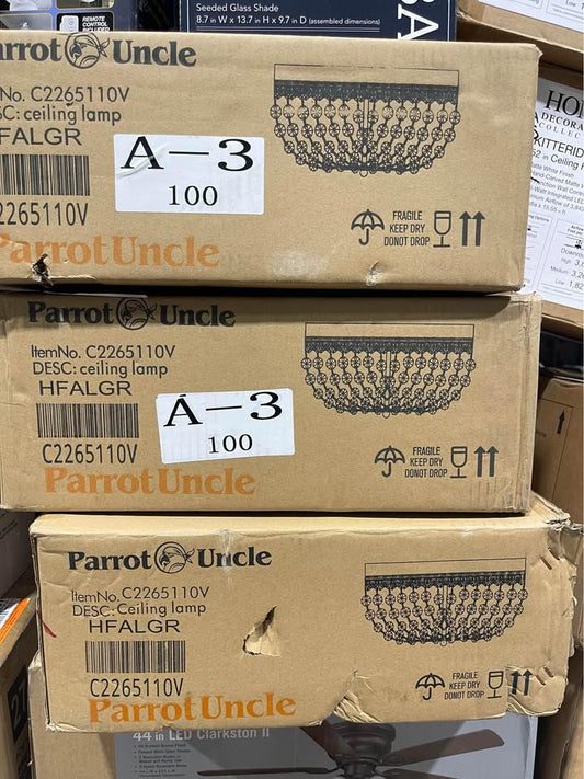 Parrot Uncle 13.75 in. 3-Light Modern Crystal Chrome Flush Mount Ceiling Light Chandelier for Hallway and Bedroom