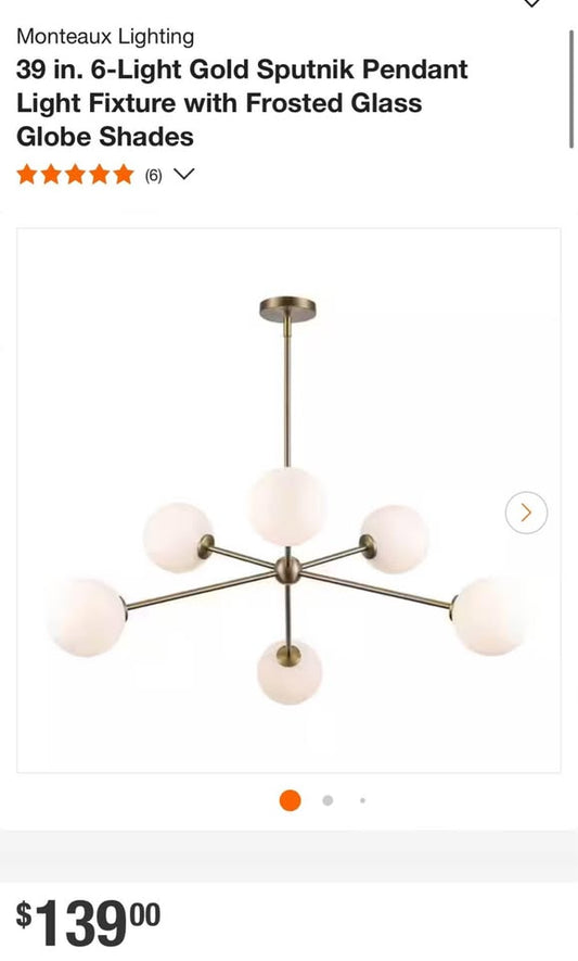 Monteaux Lighting 39 in. 6-Light Gold Sputnik Pendant Light Fixture with Frosted Glass Globe Shades