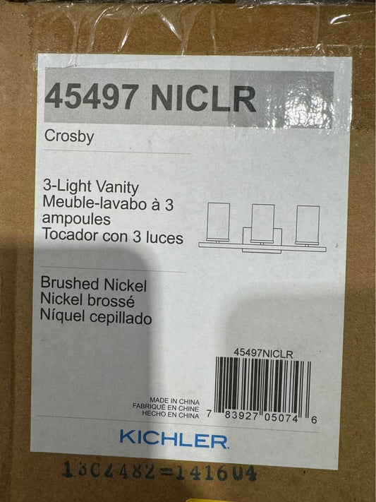 KICHLER Crosby 23 in. 3-Light Brushed Nickel Contemporary Bathroom Vanity Light with Clear Glass