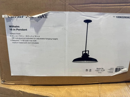 Hampton Bay Wilhelm 16 in. 1-Light Black Industrial Farmhouse Pendant Light Fixture with Metal Shade