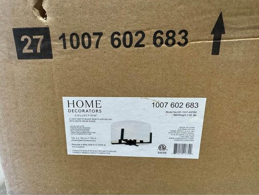 Home Decorators Collection Manhattan 4-Light Matte Black Semi Flush mount with White Drum Shade