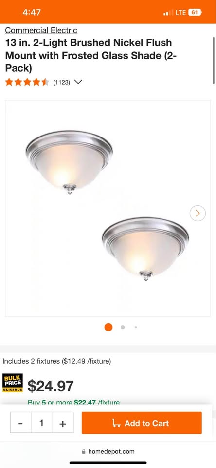 Commercial Electric 13 in. 2-Light Brushed Nickel Flush Mount with Frosted Glass Shade (2-Pack)