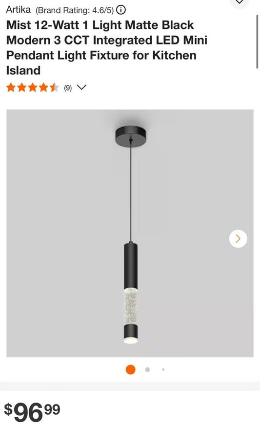 Mist 12-Watt 1 Light Matte Black Modern 3 CCT Integrated LED Mini Pendant Light Fixture for Kitchen Island