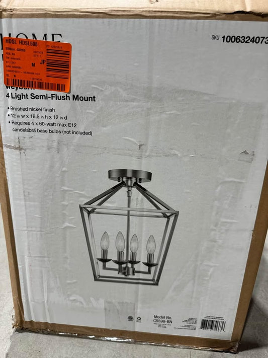 Home Decorators Collection Weyburn 16.5 in. 4-Light Brushed Nickel Farmhouse Semi-Flush Mount Ceiling Light Fixture with Caged Metal Shade