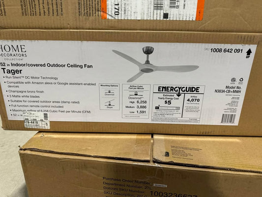 Home Decorators Collection Tager 52 in. Indoor/Outdoor Smart Brushed Gold Ceiling Fan with Remote Included Powered by Hubspace
