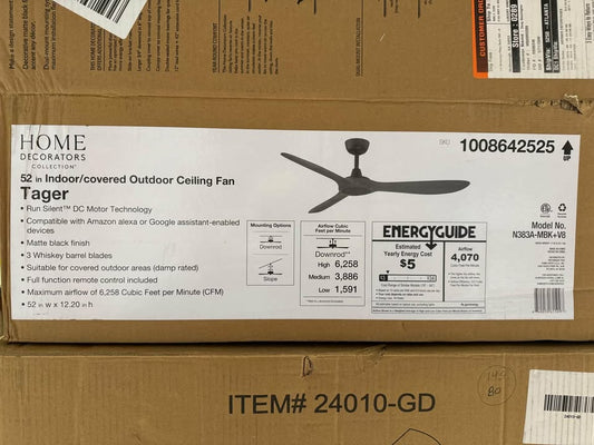 Home Decorators Collection Tager 52 in. Smart Indoor/Outdoor Matte Black with Whiskey Barrel Blades Ceiling Fan with Remote Powered by Hubspace