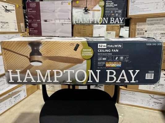 Hampton Bay Halwin 52 in. Indoor/Outdoor Matte Black Low Profile Ceiling Fan with Adjustable White LED with Remote Included