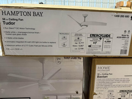 Hampton Bay Tudor 56 in. Indoor Brushed Gold with White Blades Ceiling Fan with Adjustable White Integrated LED with Remote Included