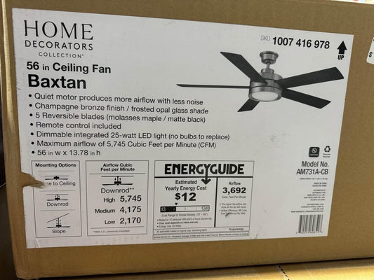 Home Decorators Collection Baxtan 56 in. Indoor Brushed Gold Ceiling Fan with Warm White Integrated LED with Remote Included