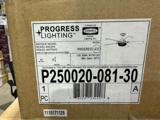 Progress Lighting Archie 52 in. Integrated LED Indoor Antique Nickel Dual Mount Ceiling Fan with Light and Remote Control for Bedrooms