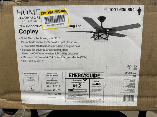 Home Decorators Collection Copley 52 in. Indoor/Outdoor LED Oil Rubbed Bronze Ceiling Fan with Light Kit, Downrod, Remote and Reversible Blades